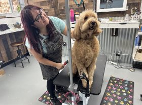 Moore has 15 years of experience in grooming, and Parker has 11. Both are devoted animal lovers with multiple pets.